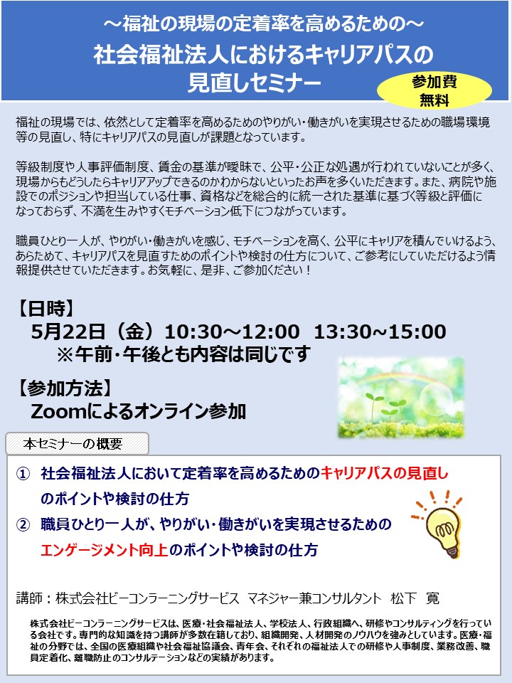 【福祉組織対象】5月22日実施 社会福祉法人のキャリアパスの見直しセミナー